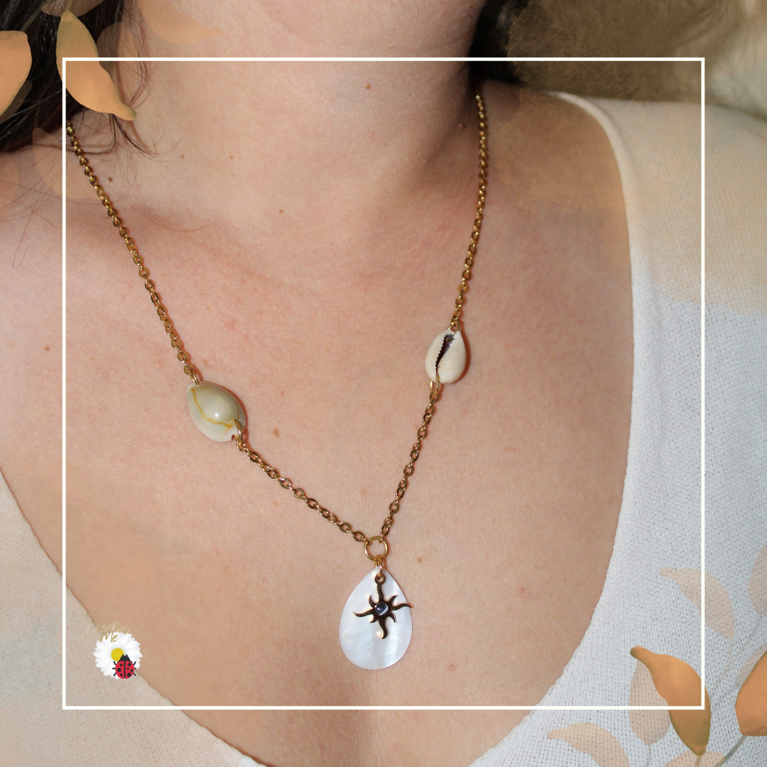 Elegância artesanal com um toque de natureza. O colar CreativeMe combina búzios naturais cuidadosamente trabalhados à mão com uma corrente dourada e um pingente central, criando uma peça única, sofisticada e cheia de personalidade. Perfeito para quem gosta de acessórios que unem estilo e significado.