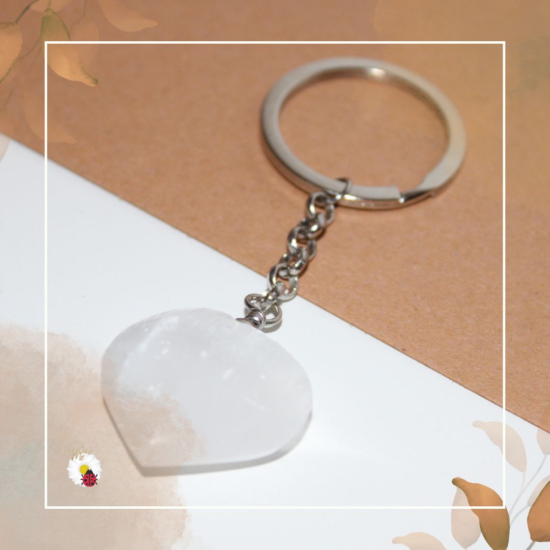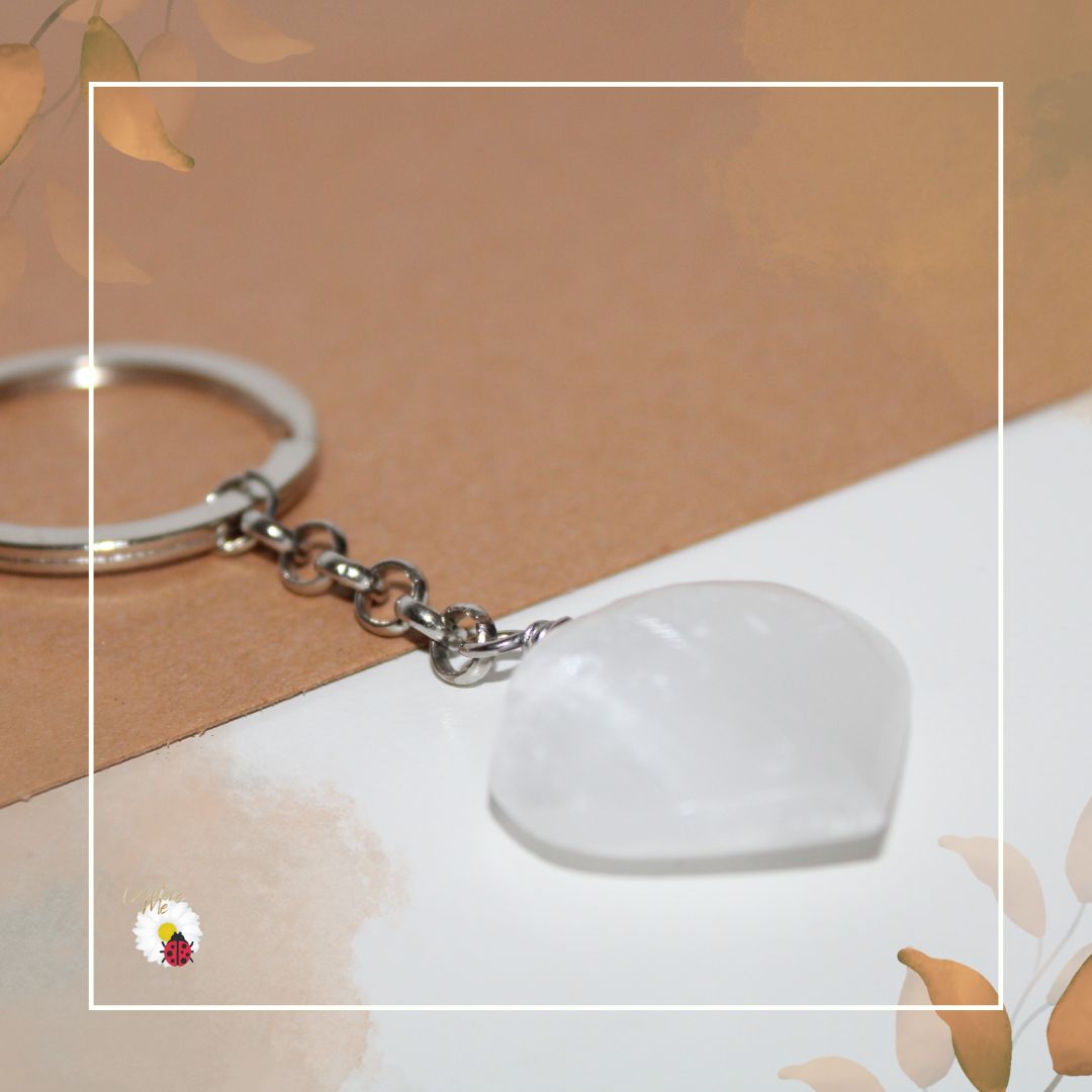 Conhecida como a pedra da clareza e limpeza energética, a selenita traz serenidade e equilíbrio. Este porta-chaves combina a beleza translúcida do cristal com um design prático para levar proteção e paz consigo onde for.