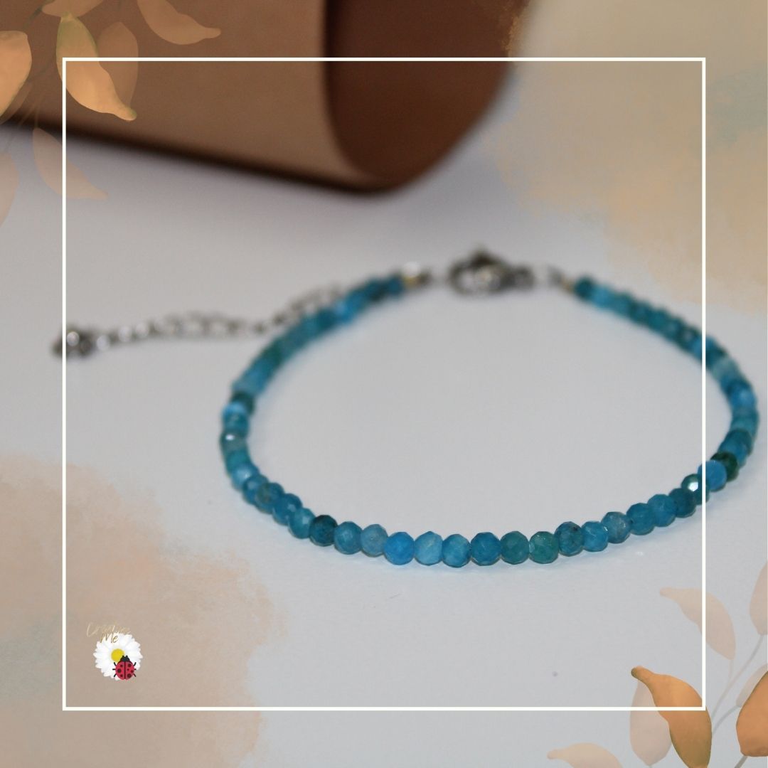 A apatita é conhecida por estimular a criatividade, a clareza mental e a comunicação. Esta pulseira fina e ajustável une a energia vibrante do cristal a um design minimalista e elegante, perfeita para quem quer expressar-se com autenticidade.