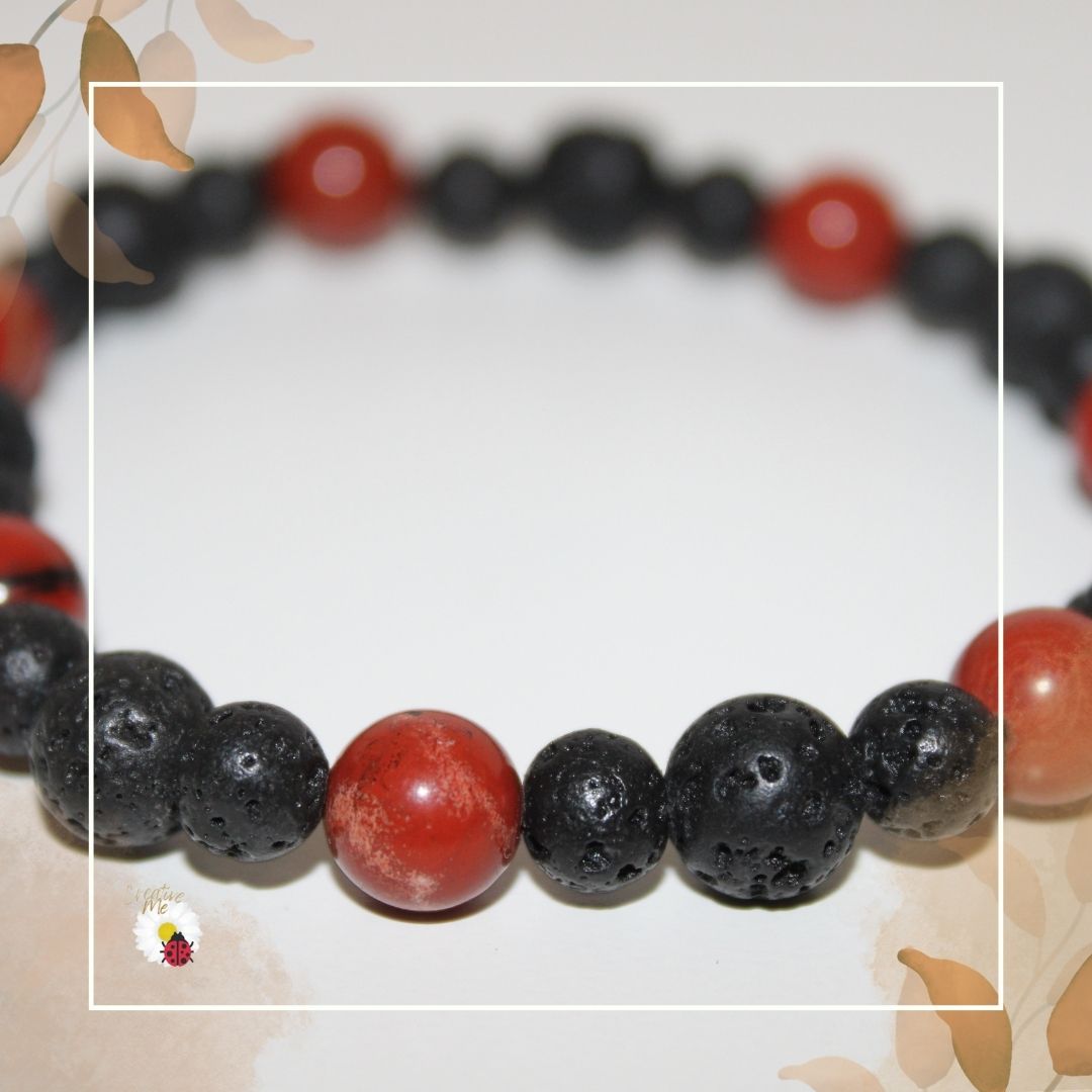A combinação da Jaspe Vermelha e da Pedra Vulcânica cria uma pulseira poderosa para quem deseja força interior, estabilidade e energia de transformação.