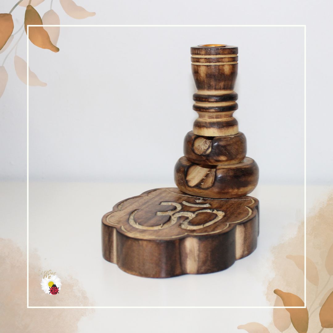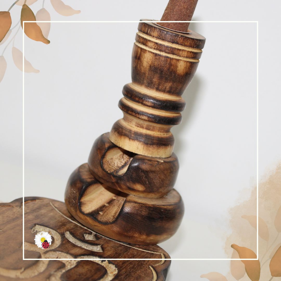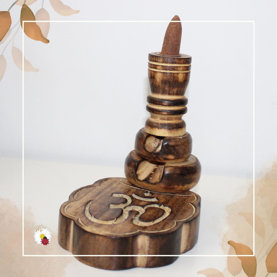 Suporte em Madeira com o símbolo OM para Incensos em Cone